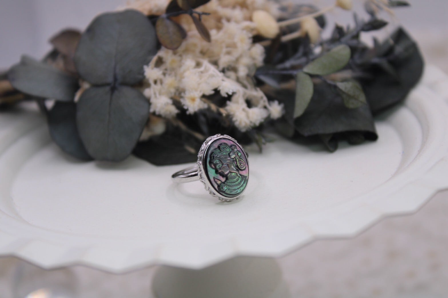商品コメント: 大人気マザーオブパールの彫りものリングが登場!