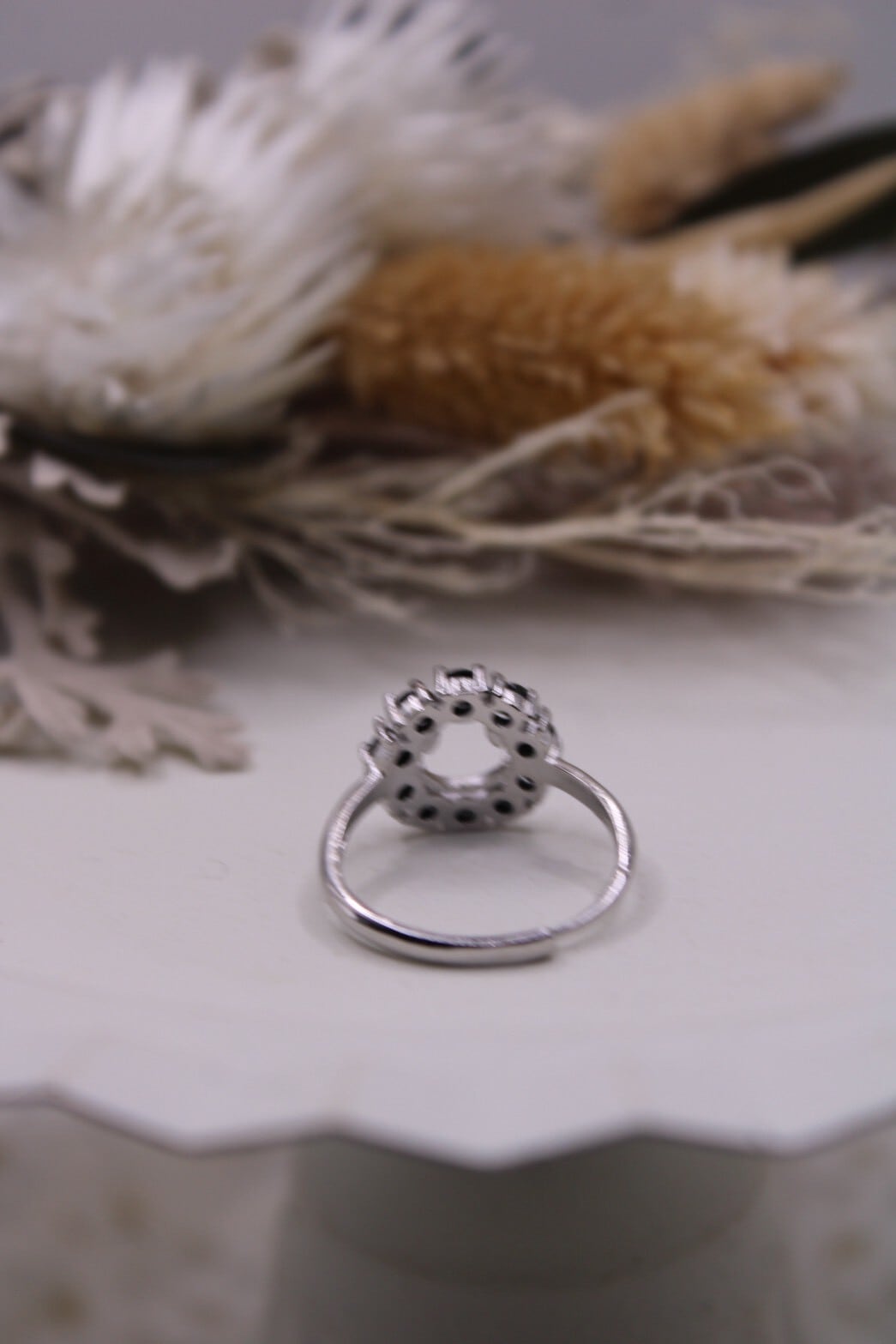 商品コメント: ブラックカラーのリングはスピネルを使用したリングはサークルデザインとなっております✨