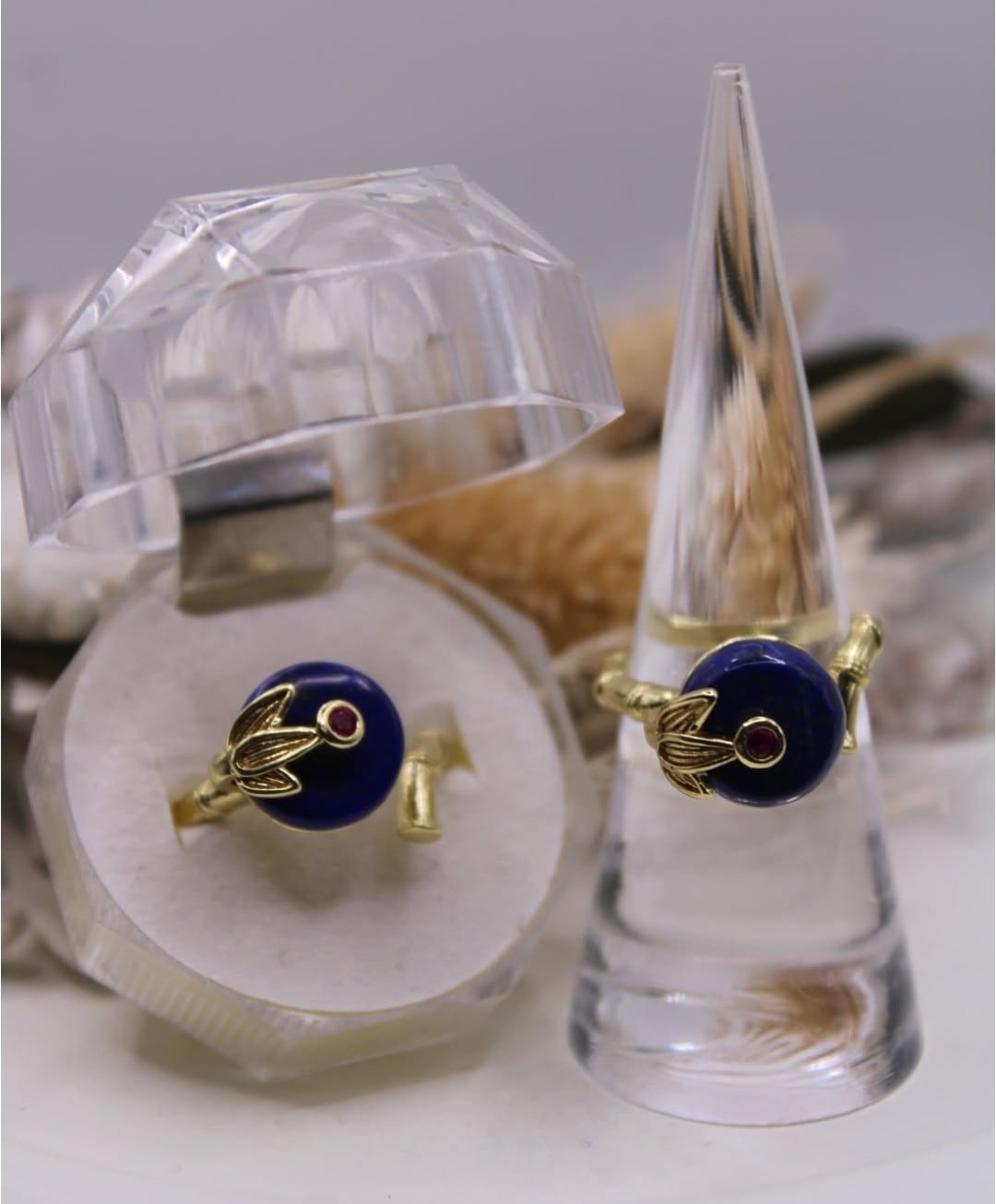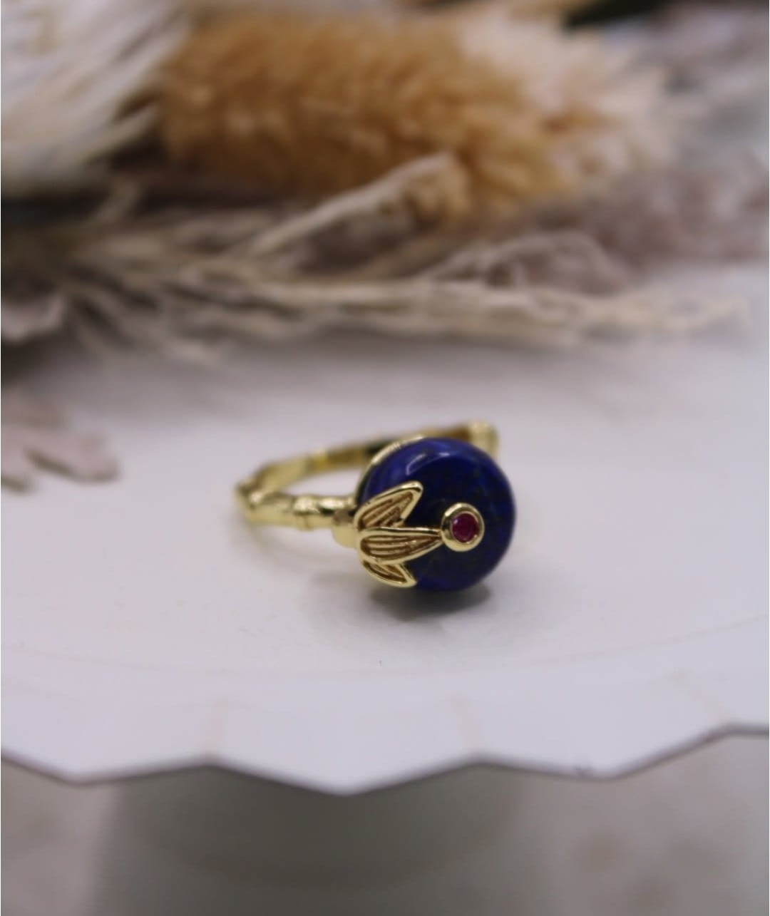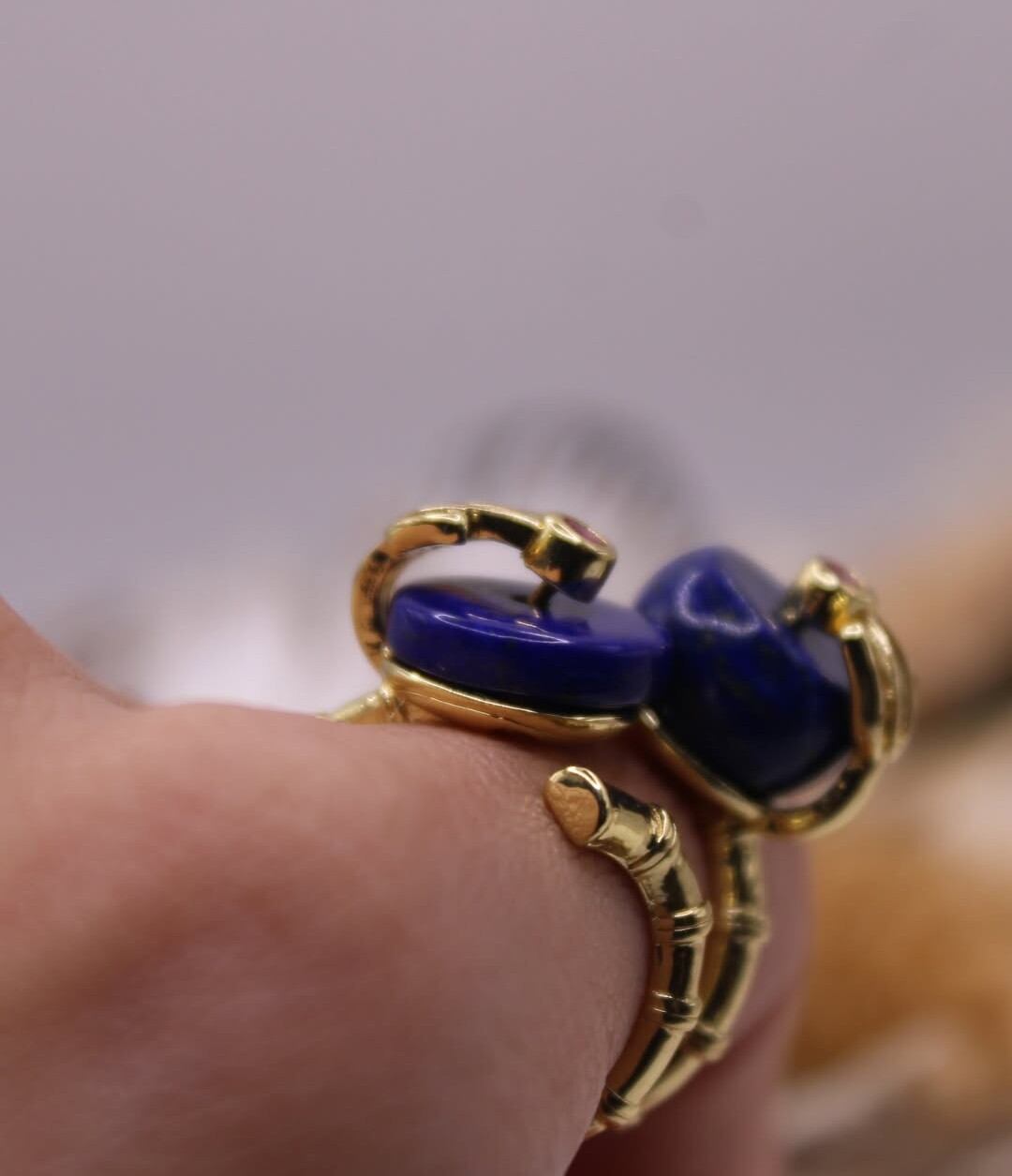商品コメント: 濃いブルーが魅力的なラピスラズリはゴールドカラーのリングと相性◎!
