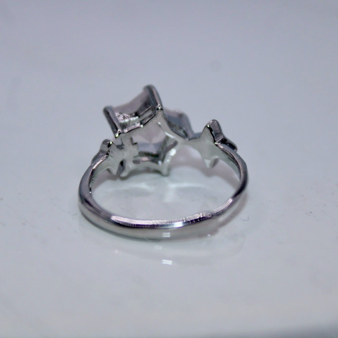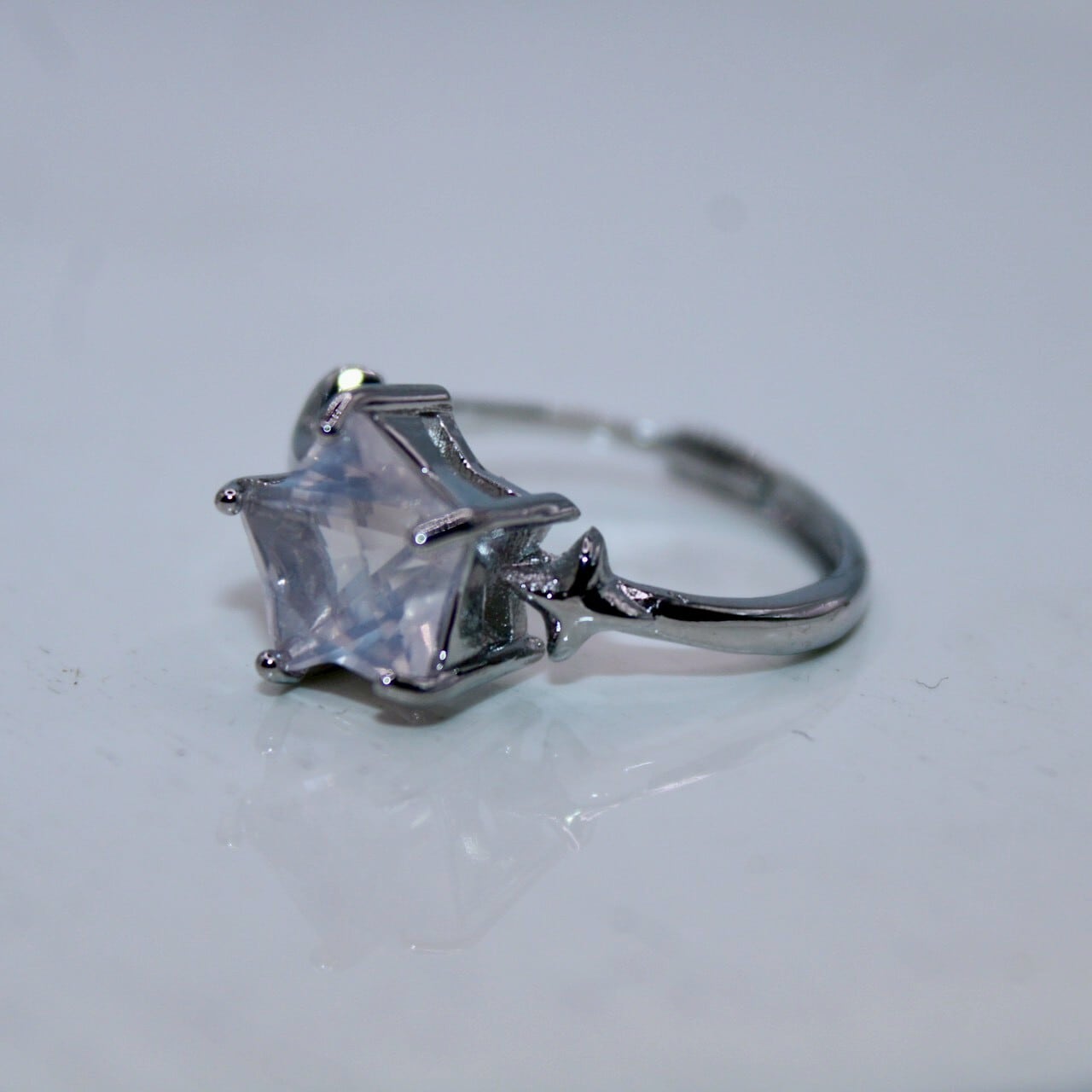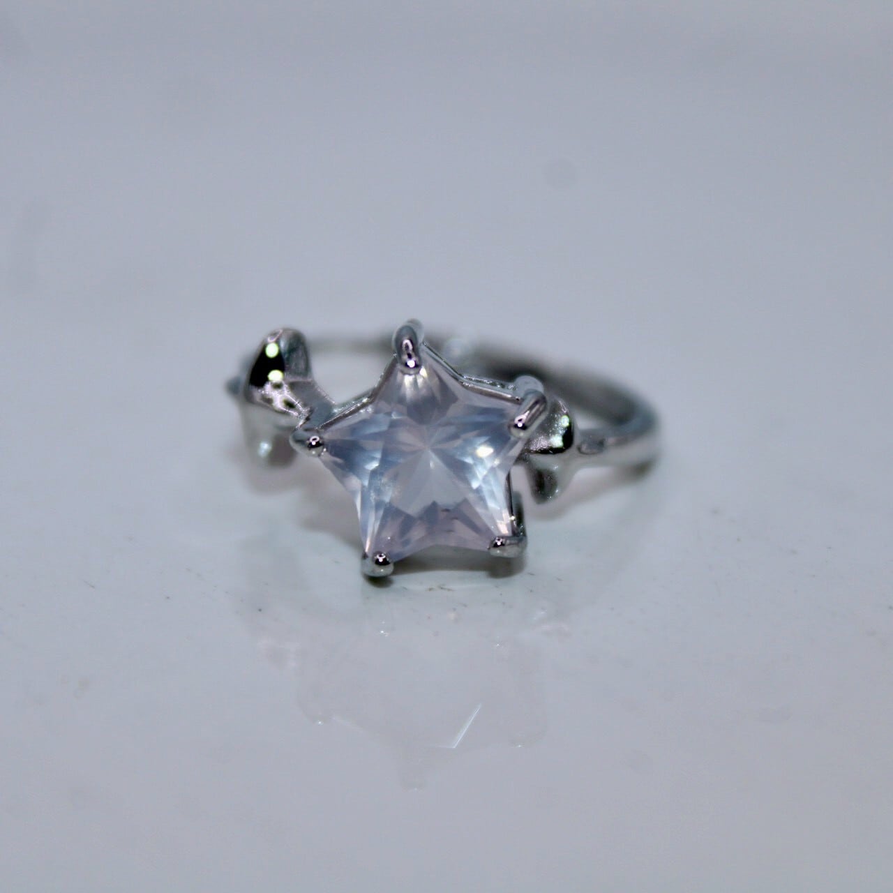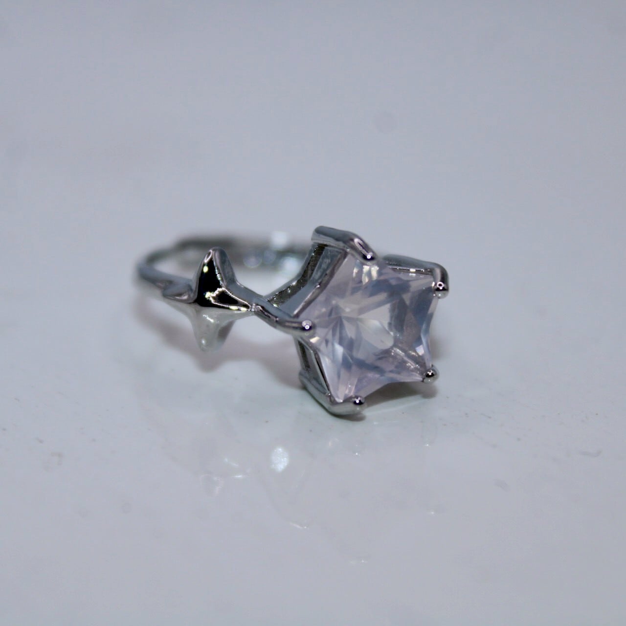 商品コメント: 淡いピンクカラーが魅力的なローズクォーツのスターデザインリング!