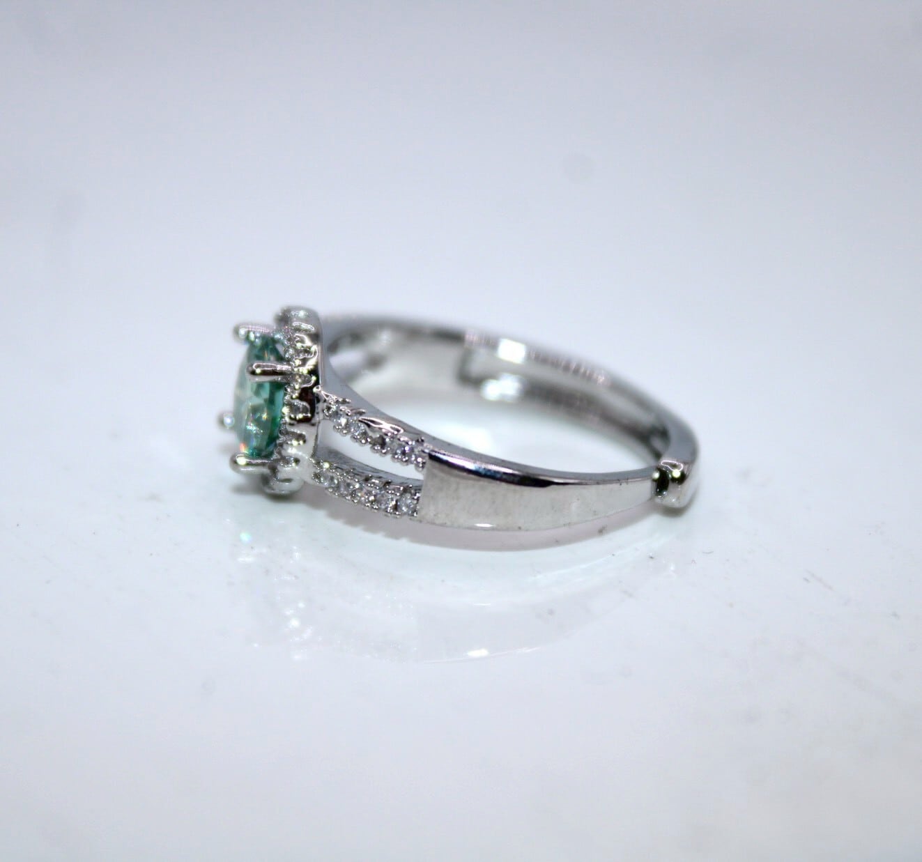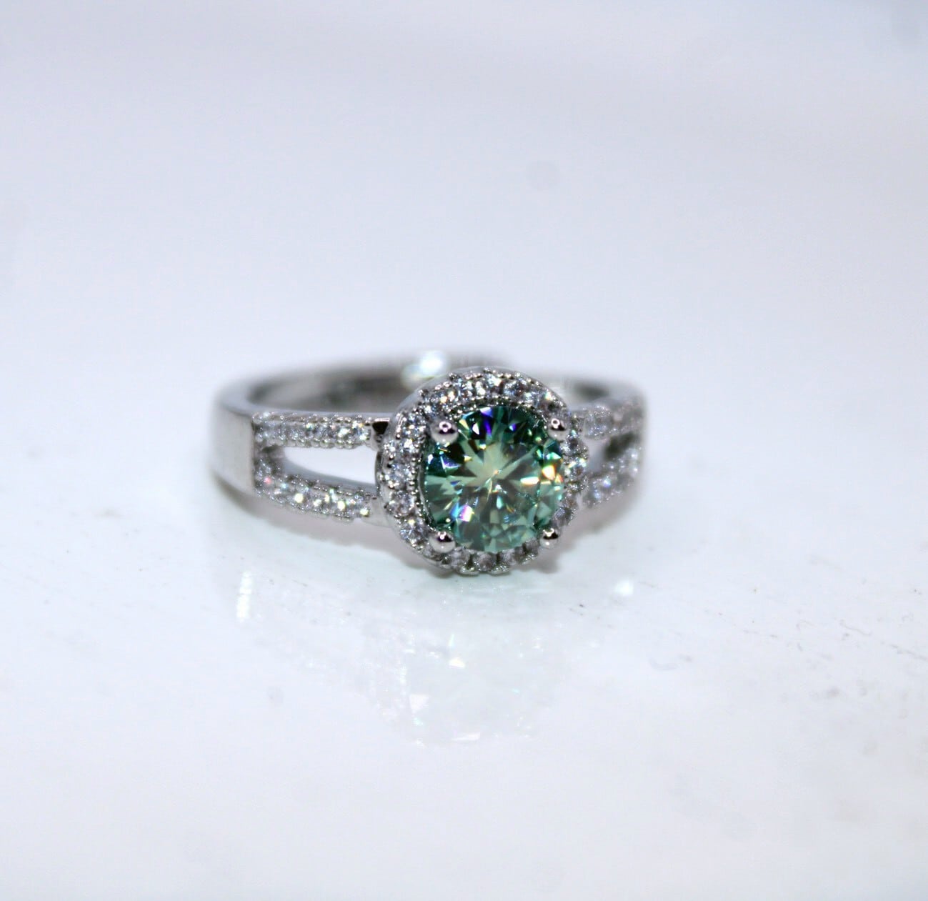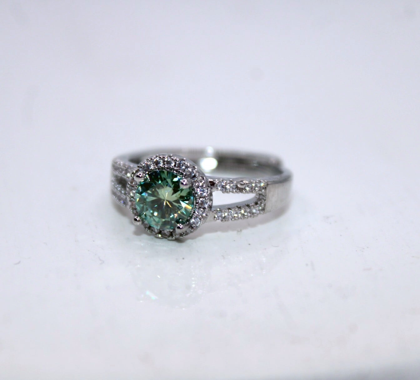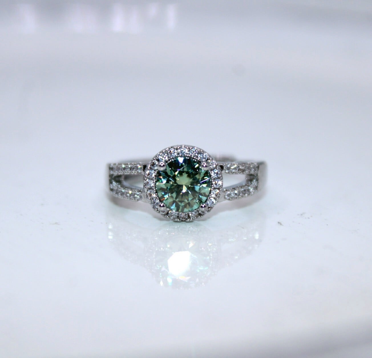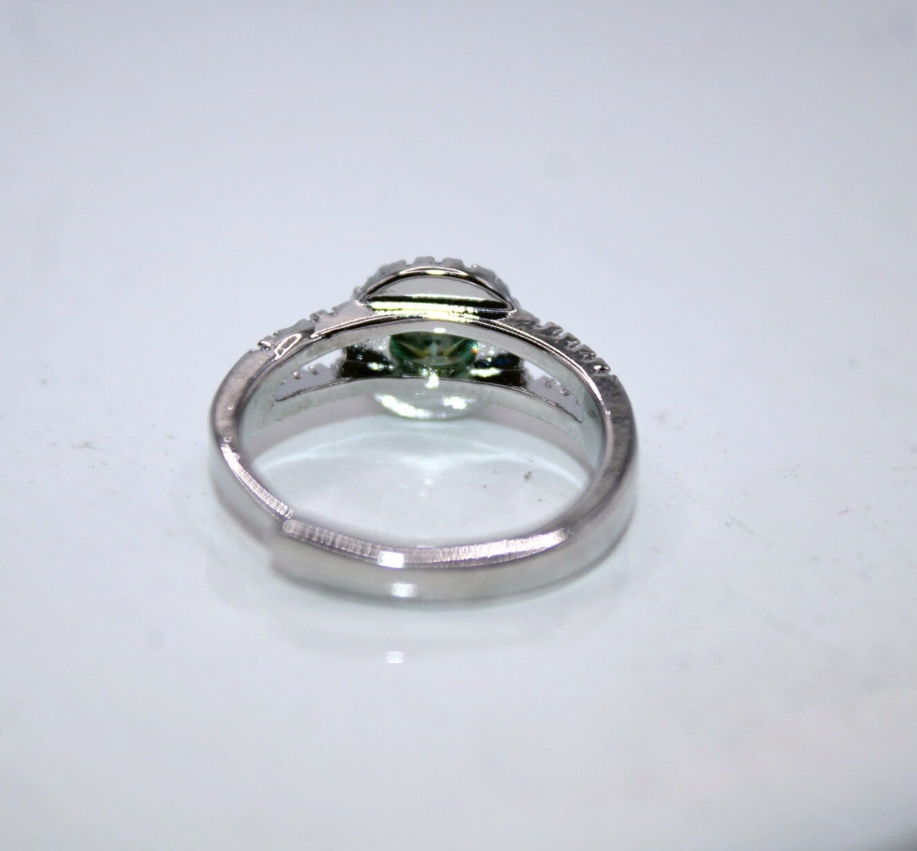 商品コメント: グリーンカラーが強いモアサナイトを使用したリング!キラッキラのルースを是非オススメさせて頂きます!