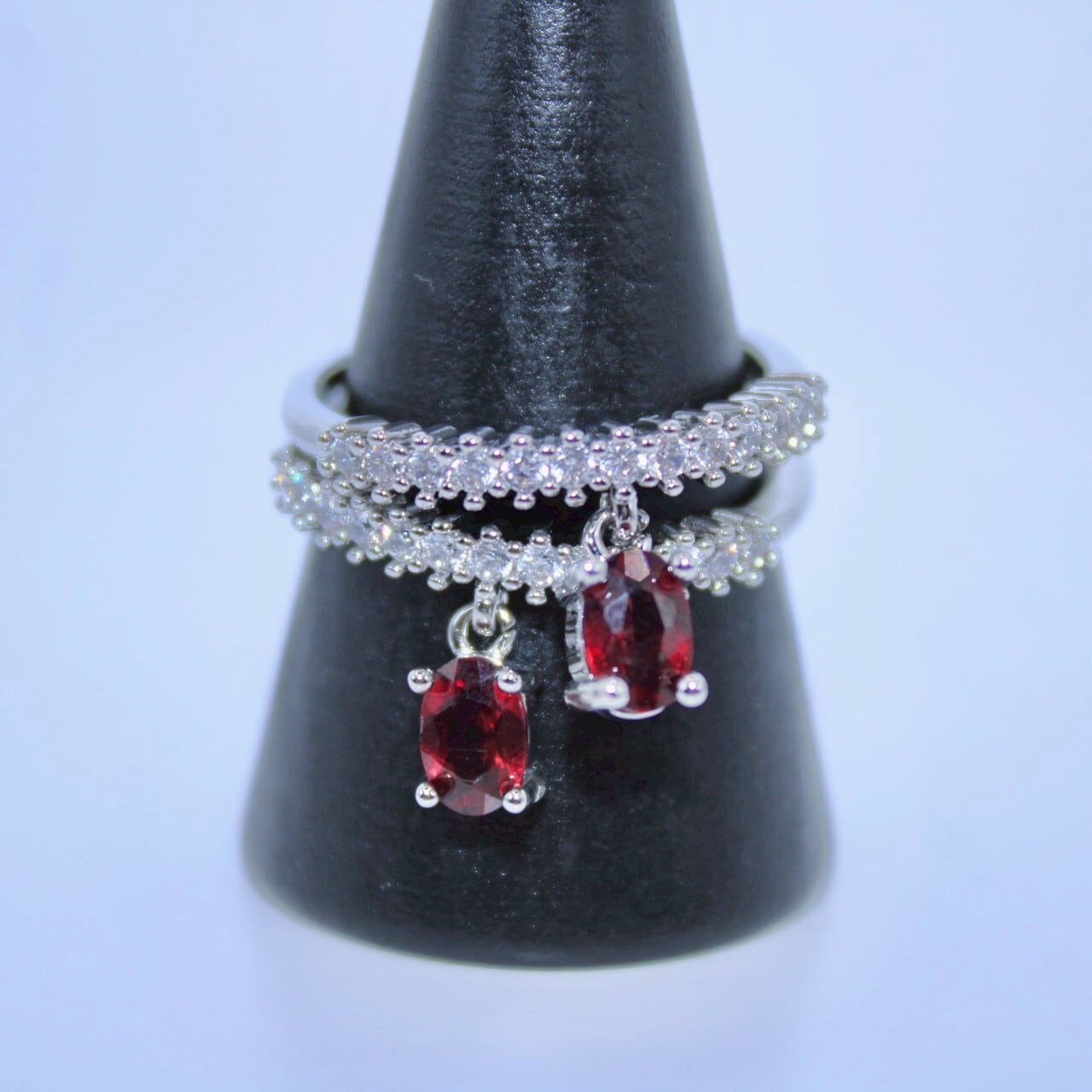 商品コメント: ゆらゆらと揺れるlinollaの新作デザインから王道の人気カラー【ガーネット】を使用したリングが登場!