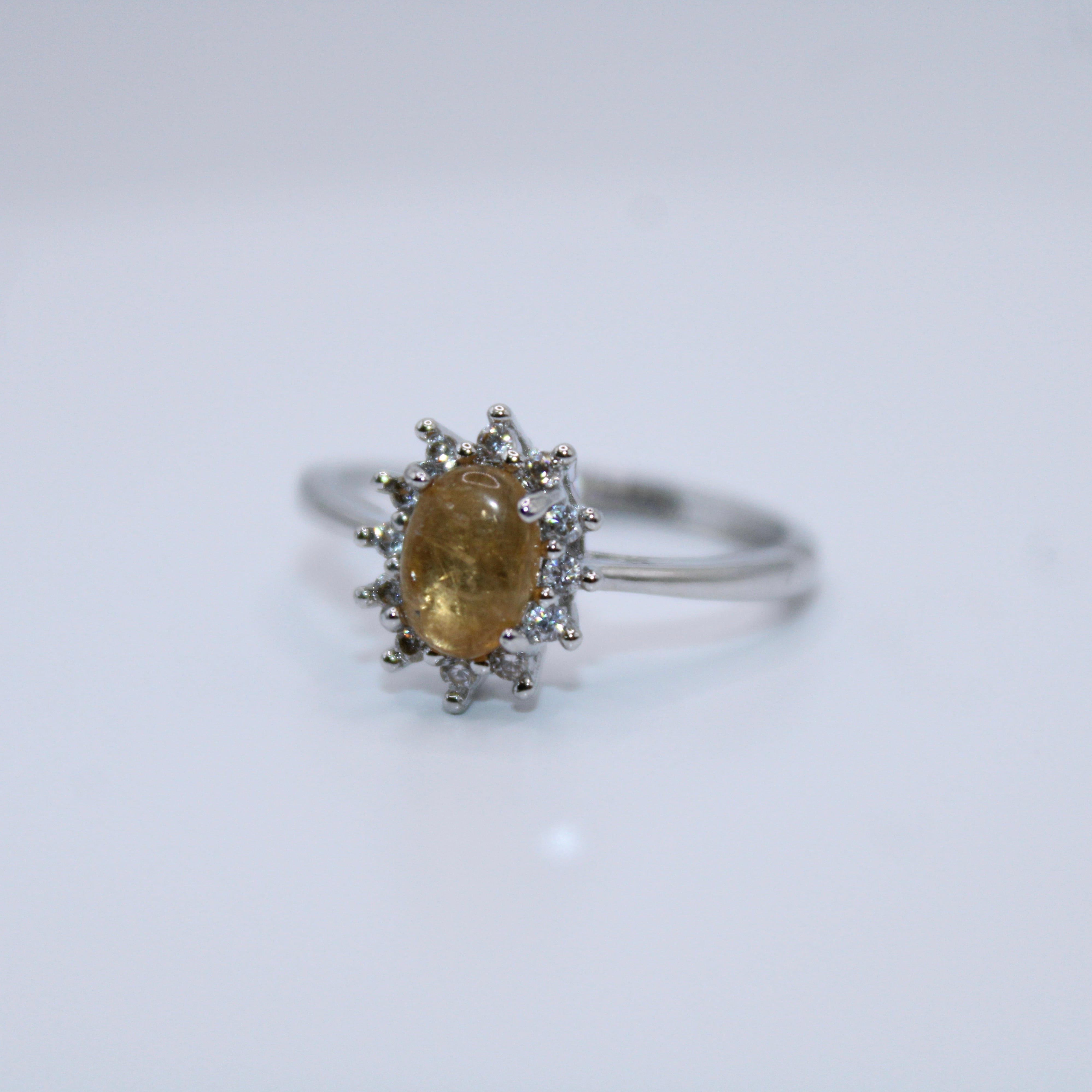 商品コメント: 珍しいカボションタイプのシトリンを使用したリング!くすみイエローが魅力的なシトリンはシンプルなデザインと相性◯!