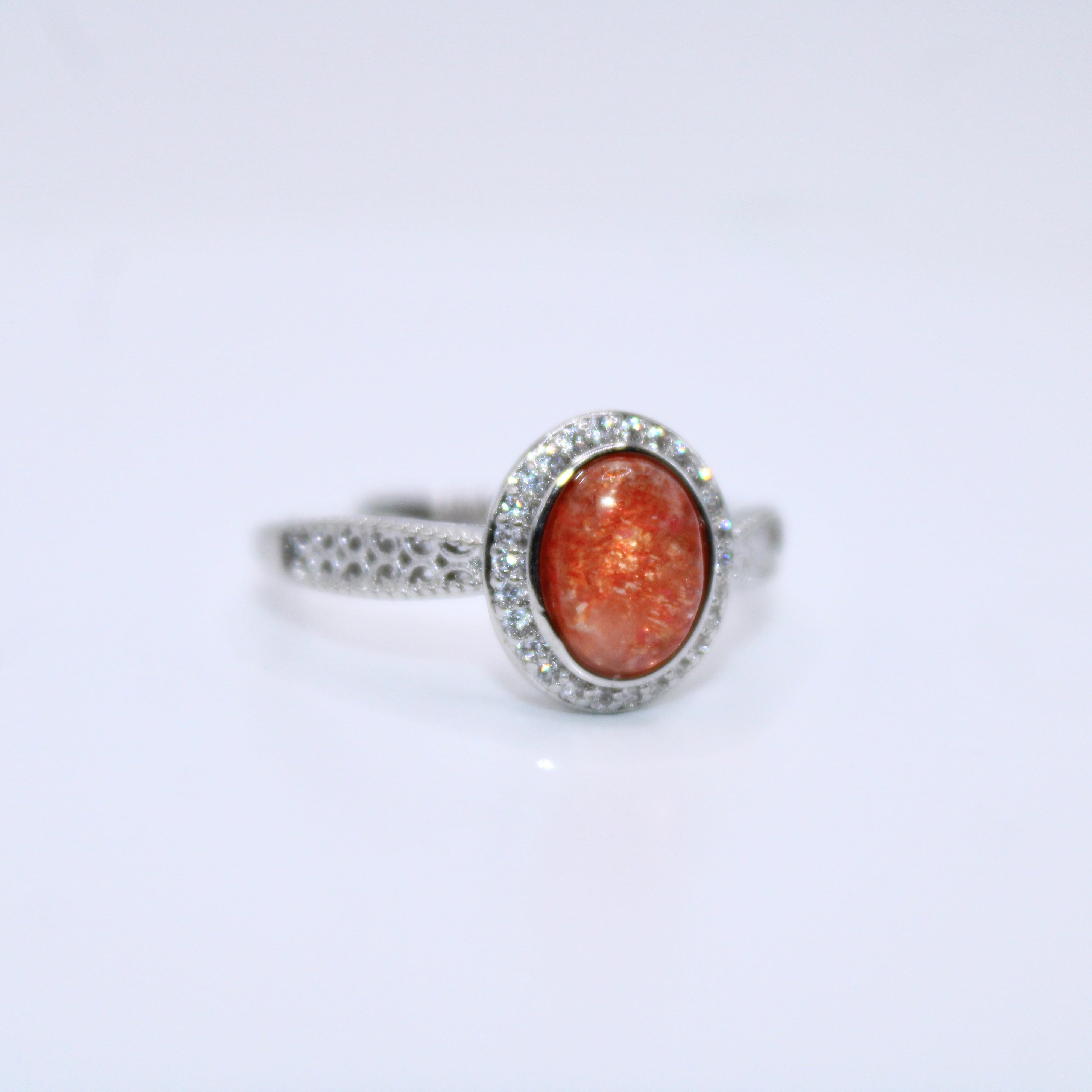 商品コメント: キラキラと輝くオレンジカラーのサンストーンを使用したリング!