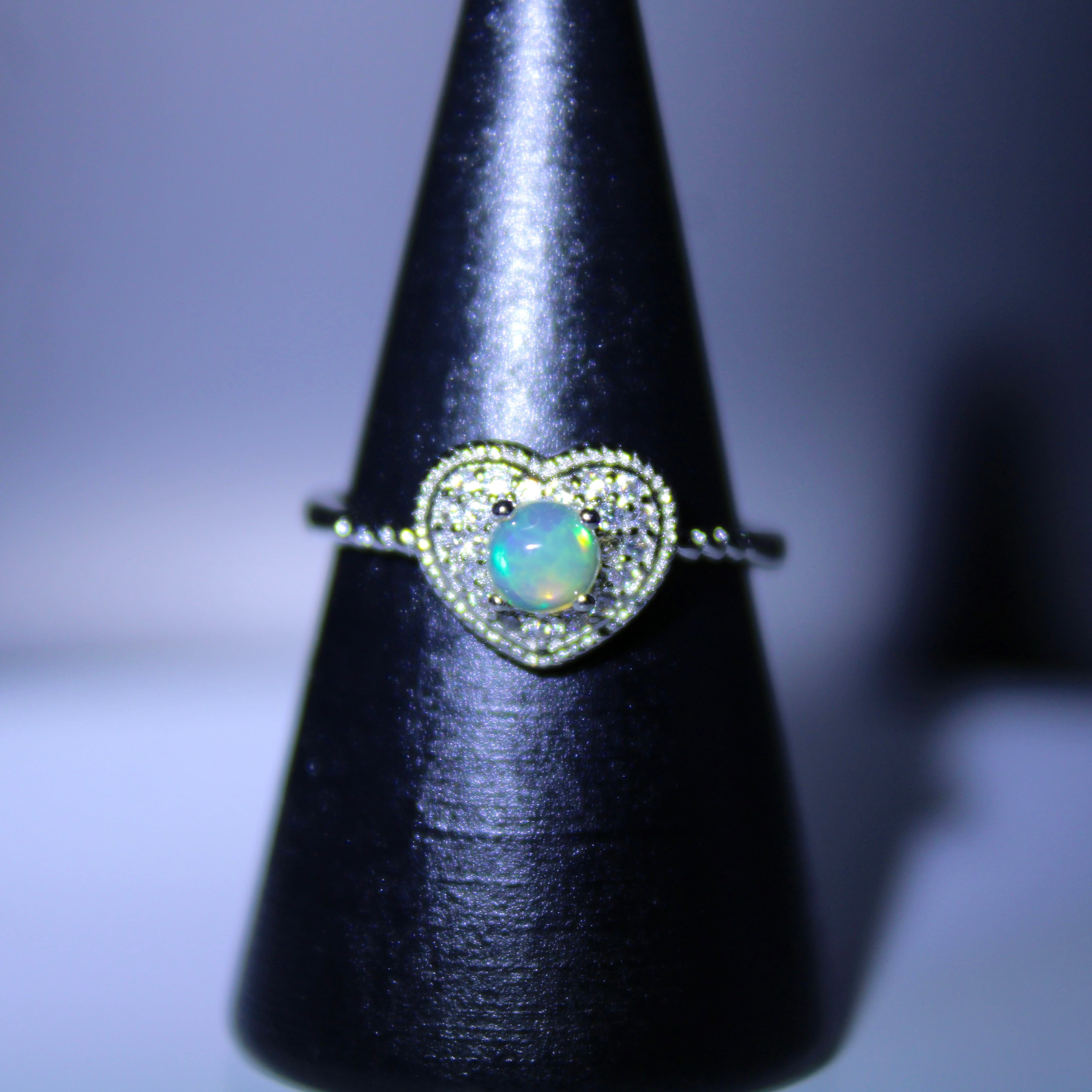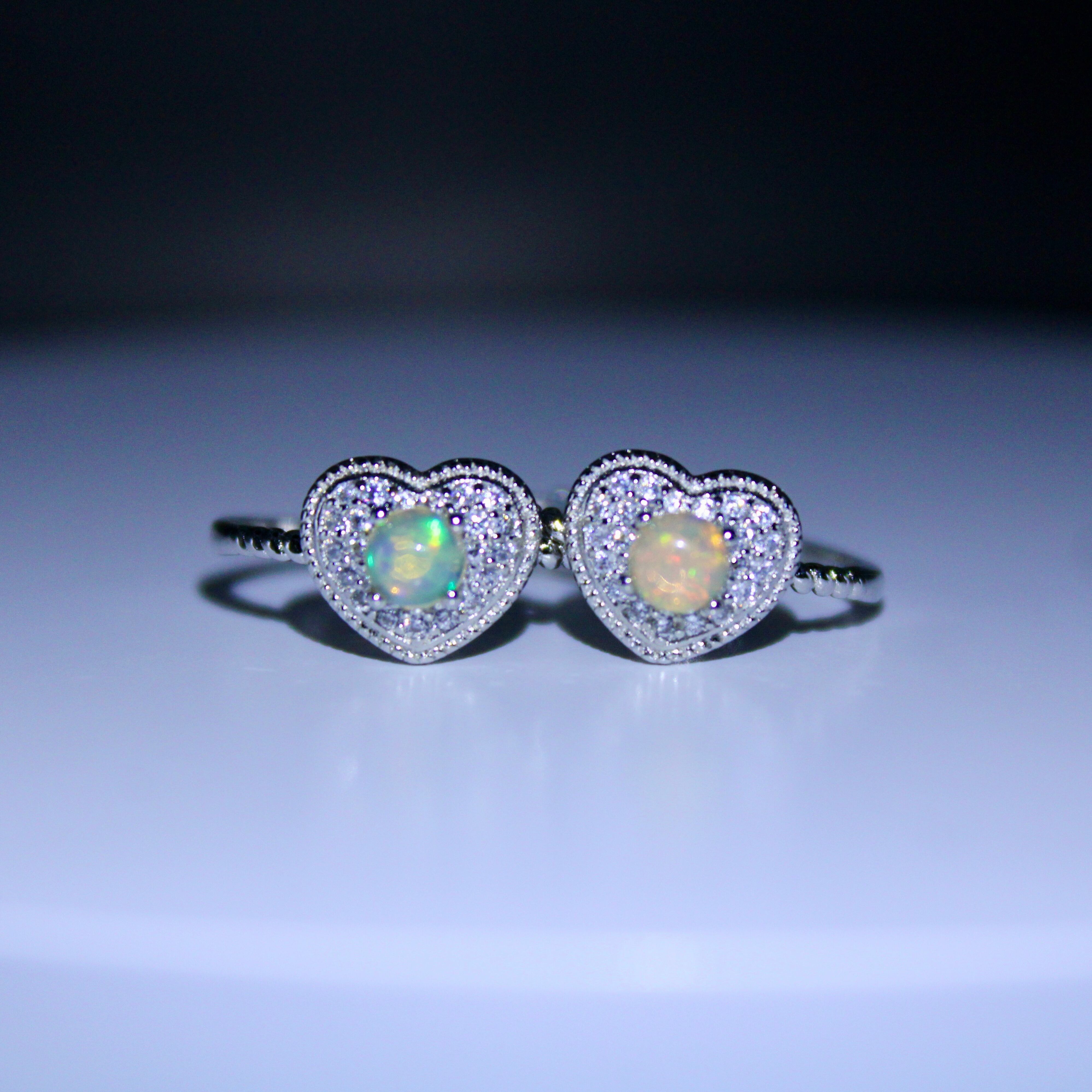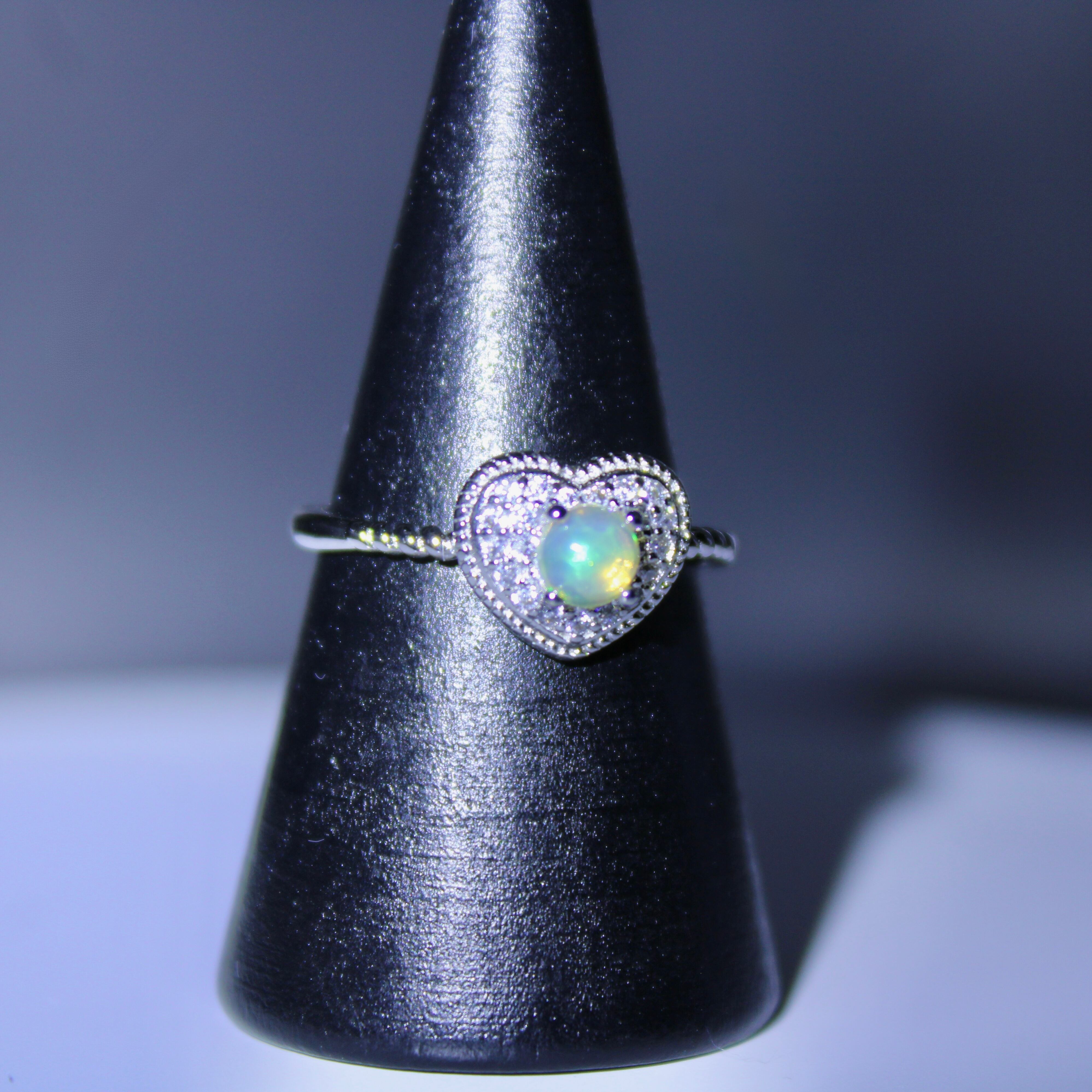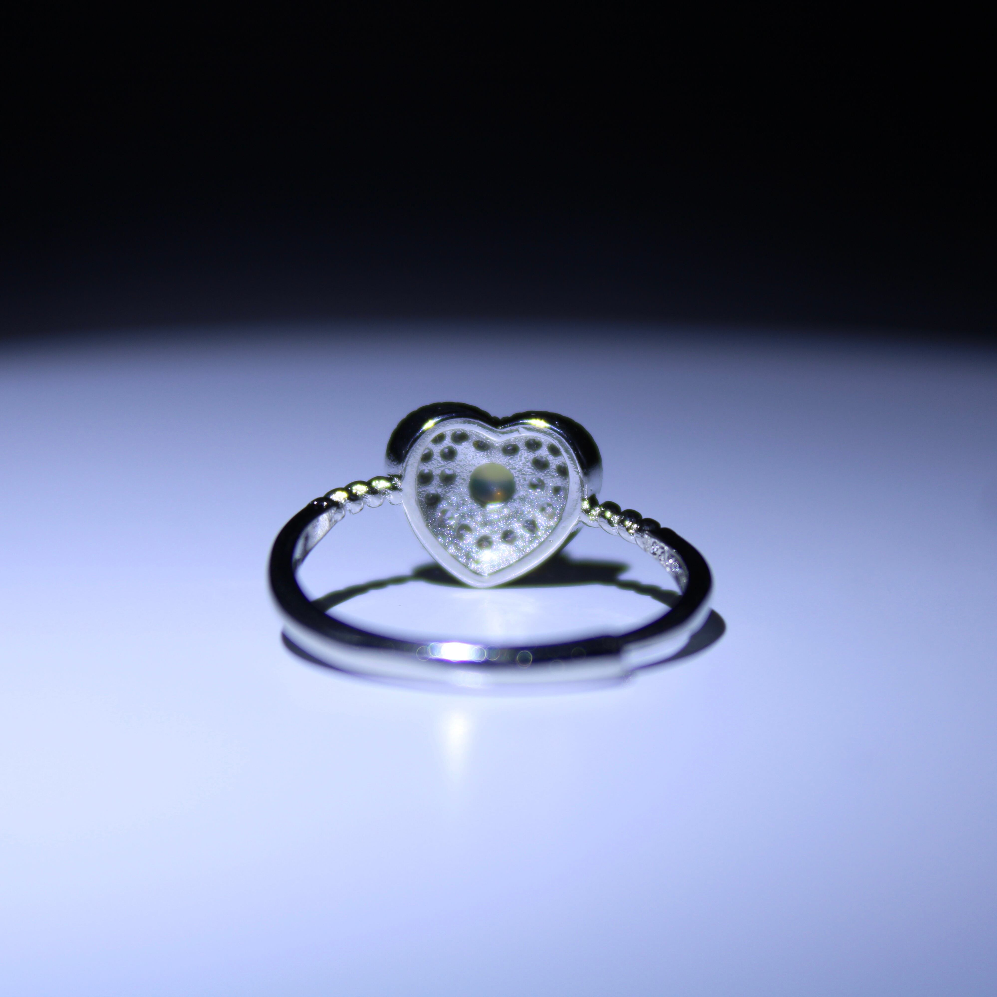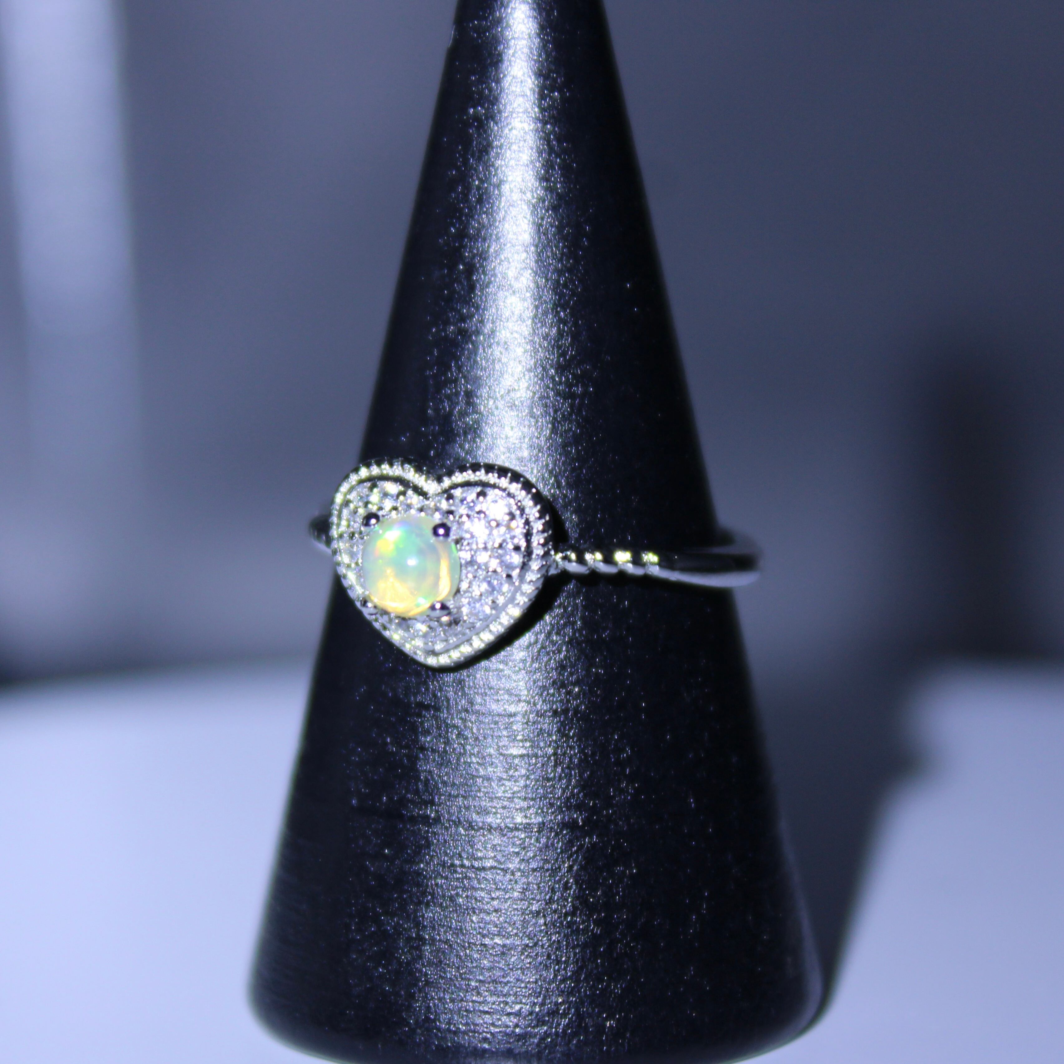 商品コメント: ハート型のキュートなデザインの真ん中に光り輝くオパールが特徴のリング!