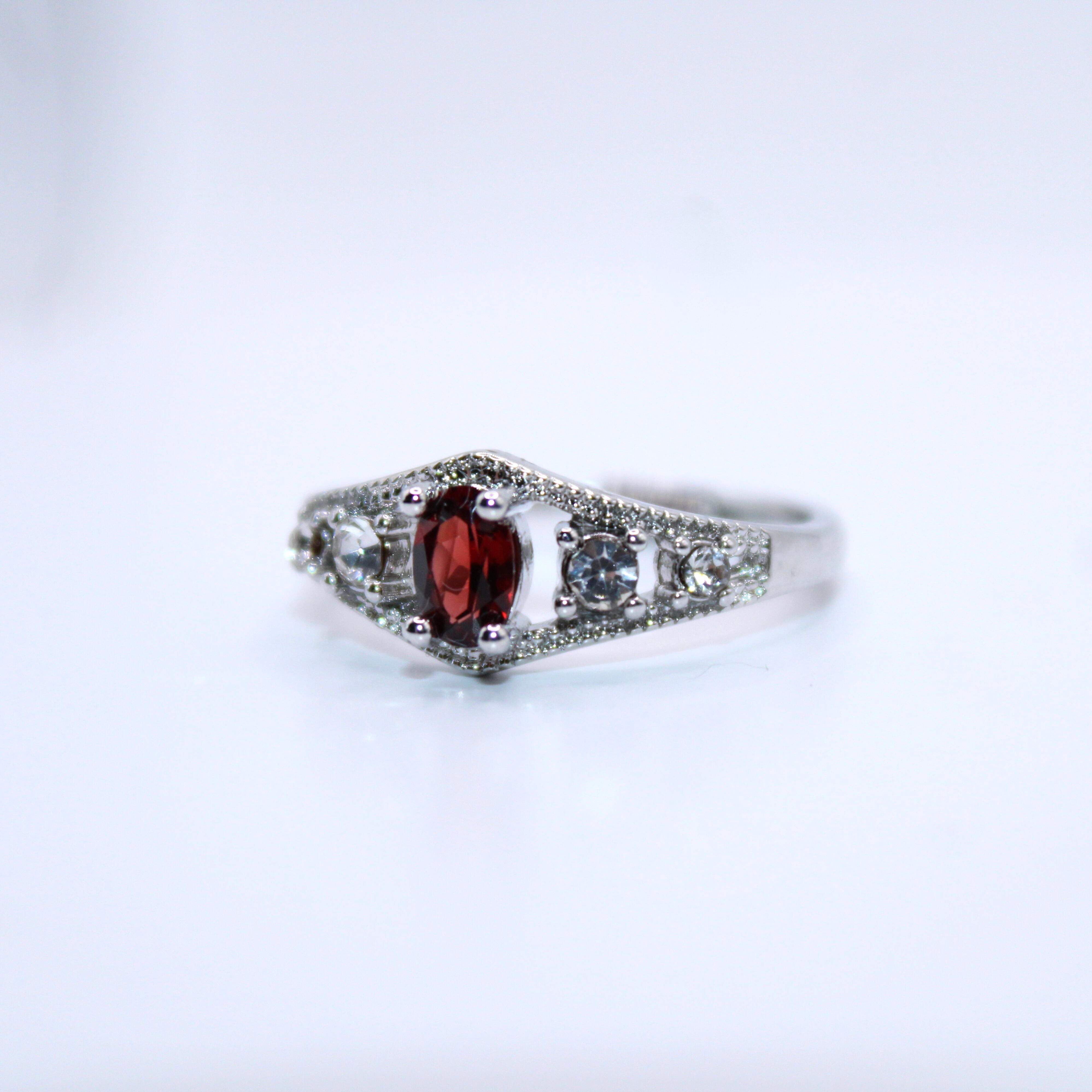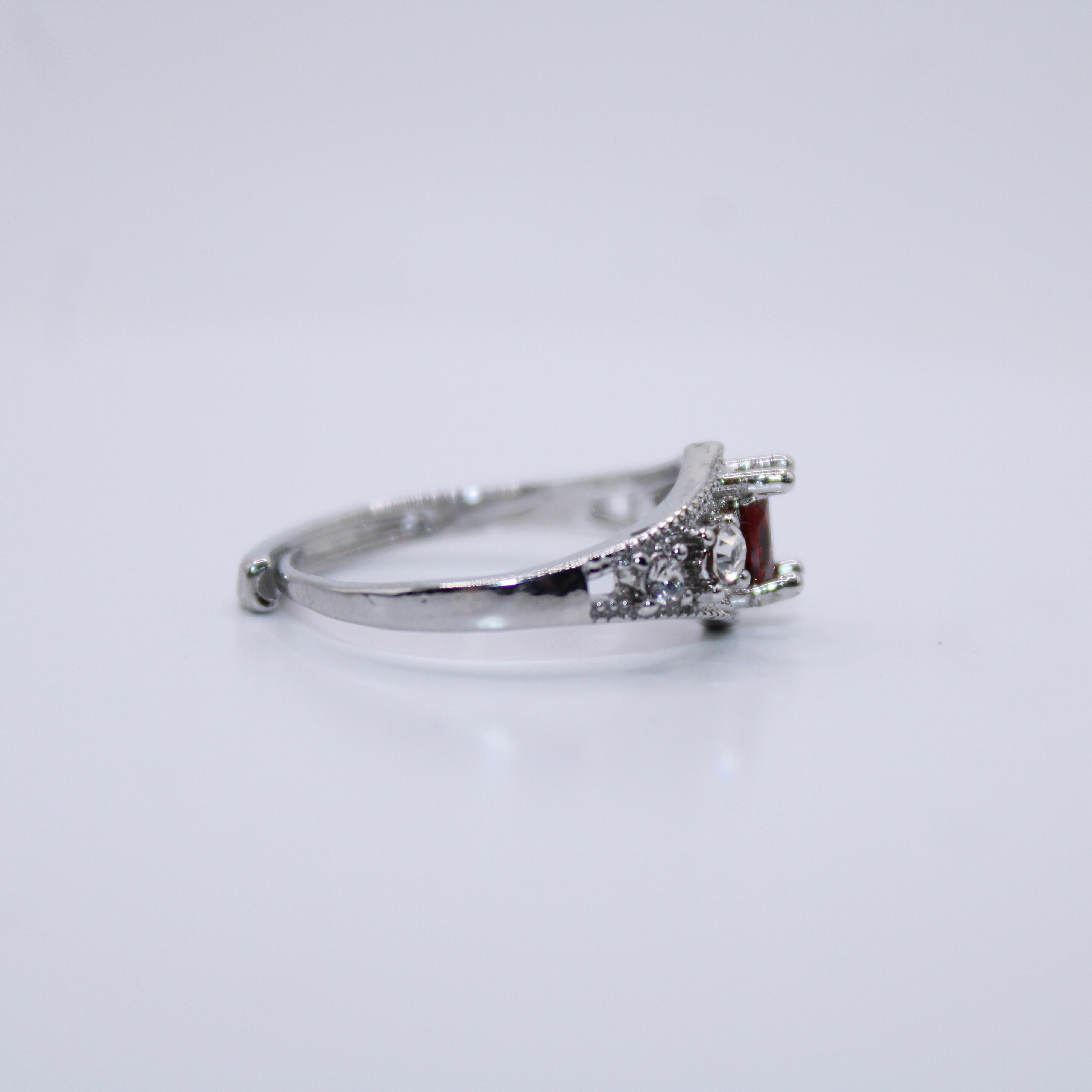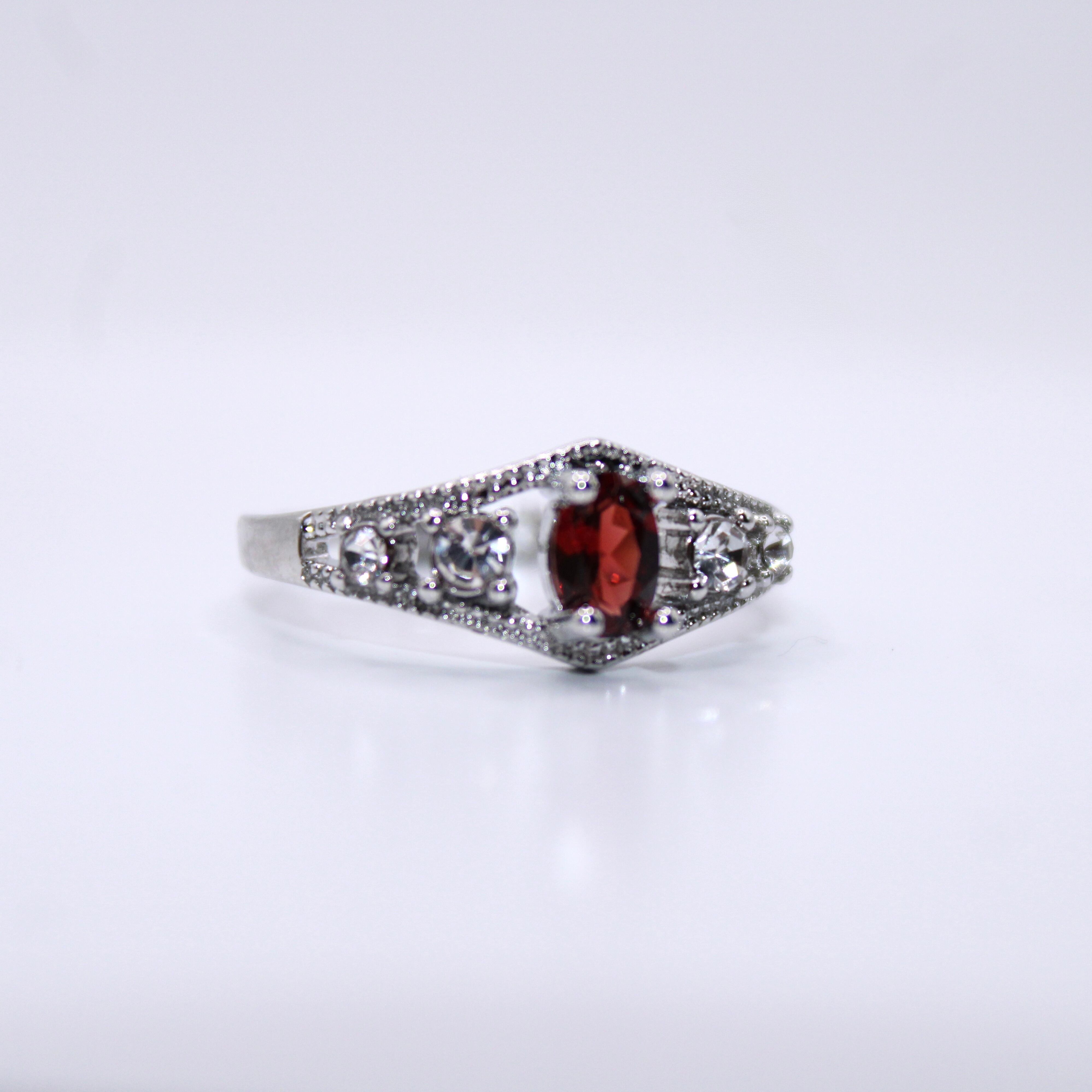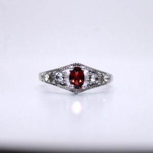 商品コメント: 深みのある美しい赤が魅力のガーネット、指をスッキリと美しく見せてくれるひし形のシルエットがマッチしたオススメのアイテムとなっております!