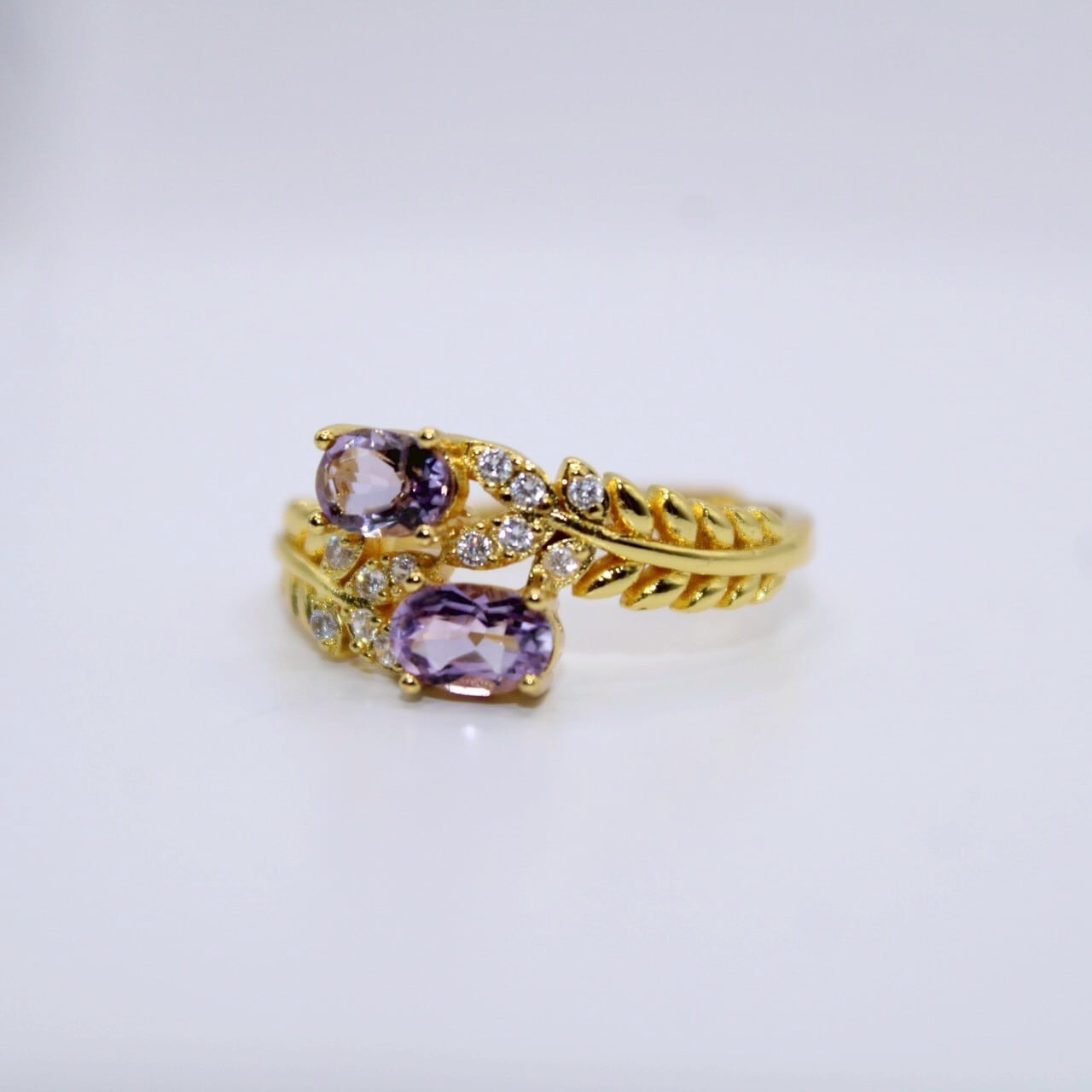 ゴールドカラーの地金と淡いパープルカラーのアメシストは相性抜群の商品となっております!