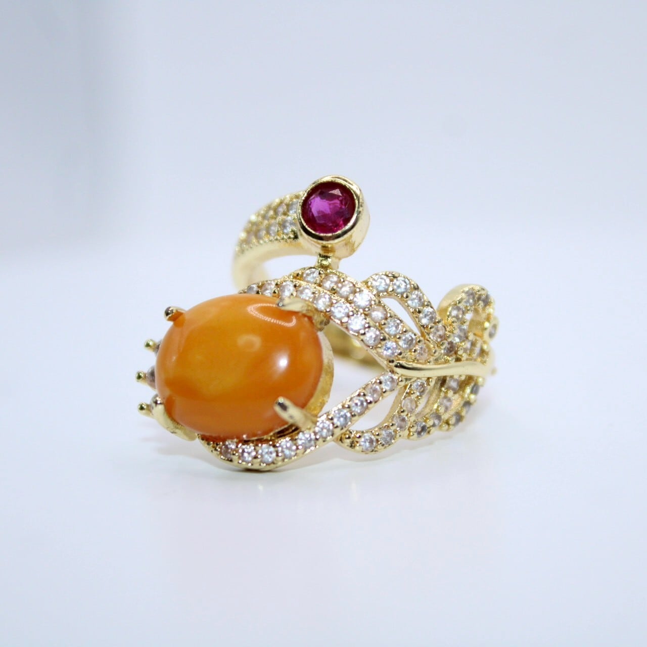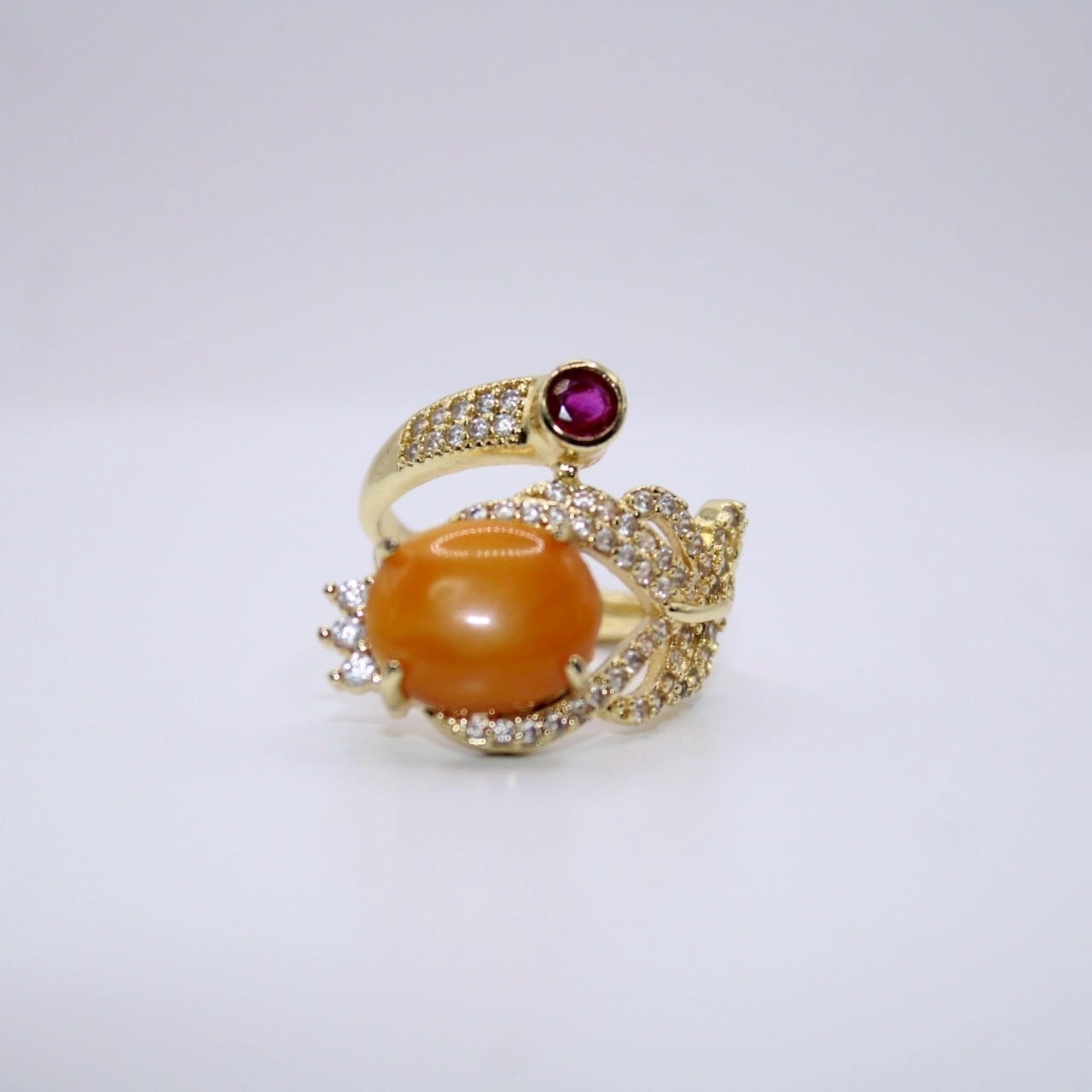 商品コメント: サイズ感バッチリ!存在感抜群のリングはアンバーを使用した商品の登場!