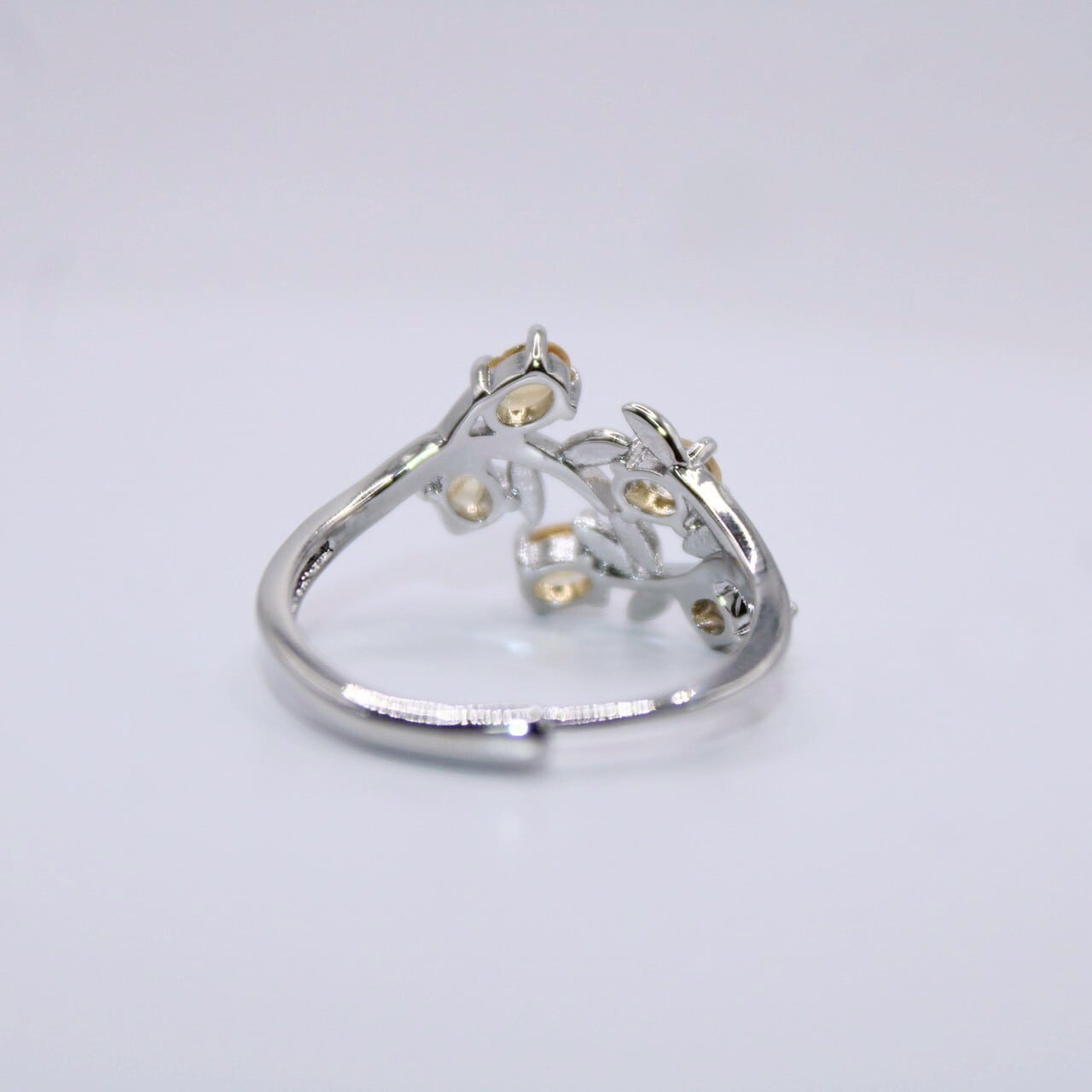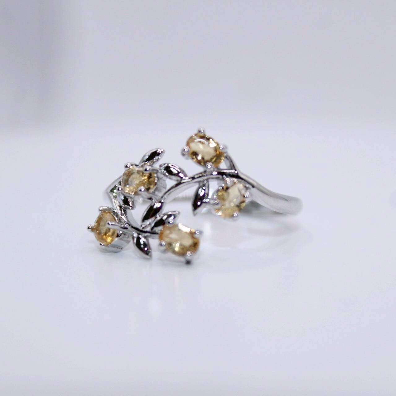 商品コメント: 大人気のリーフデザインから淡いイエローカラーのシトリンを使用したリングの登場!