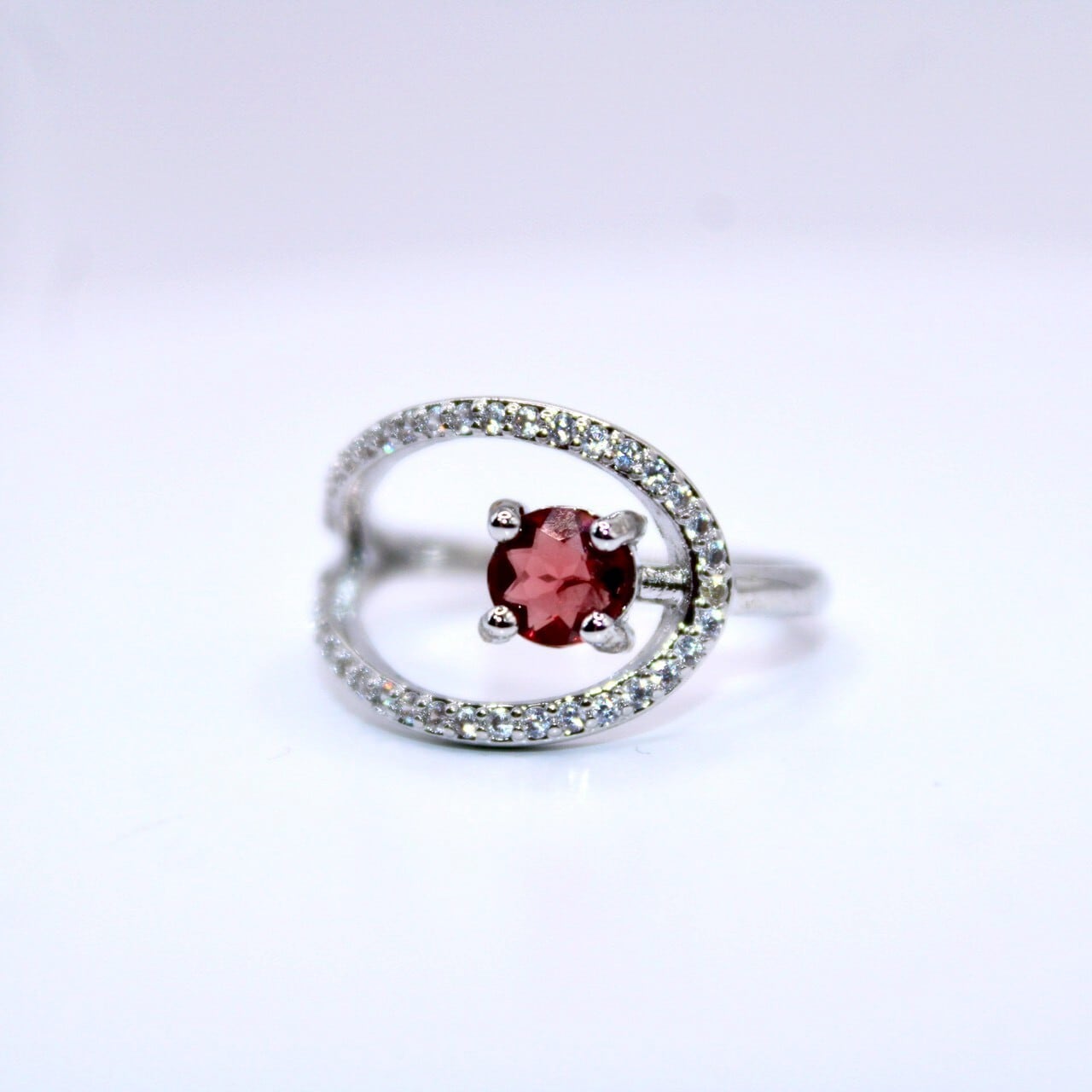 商品コメント: 真っ赤なガーネットと抜け感のあるデザインが魅力的なリングの登場!