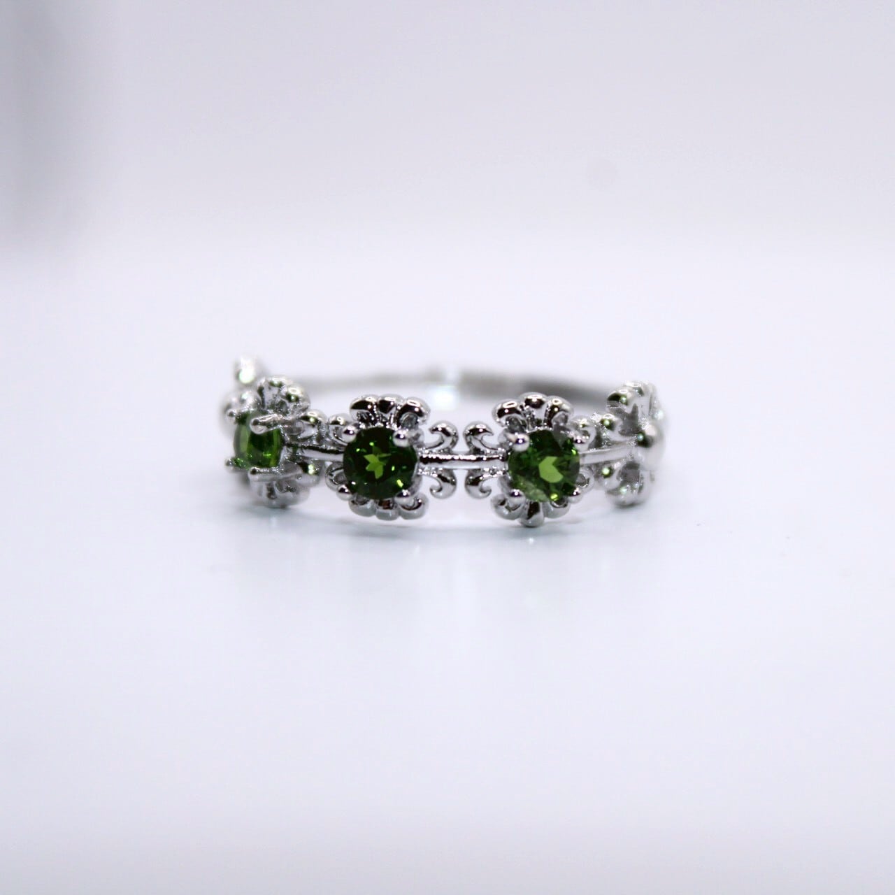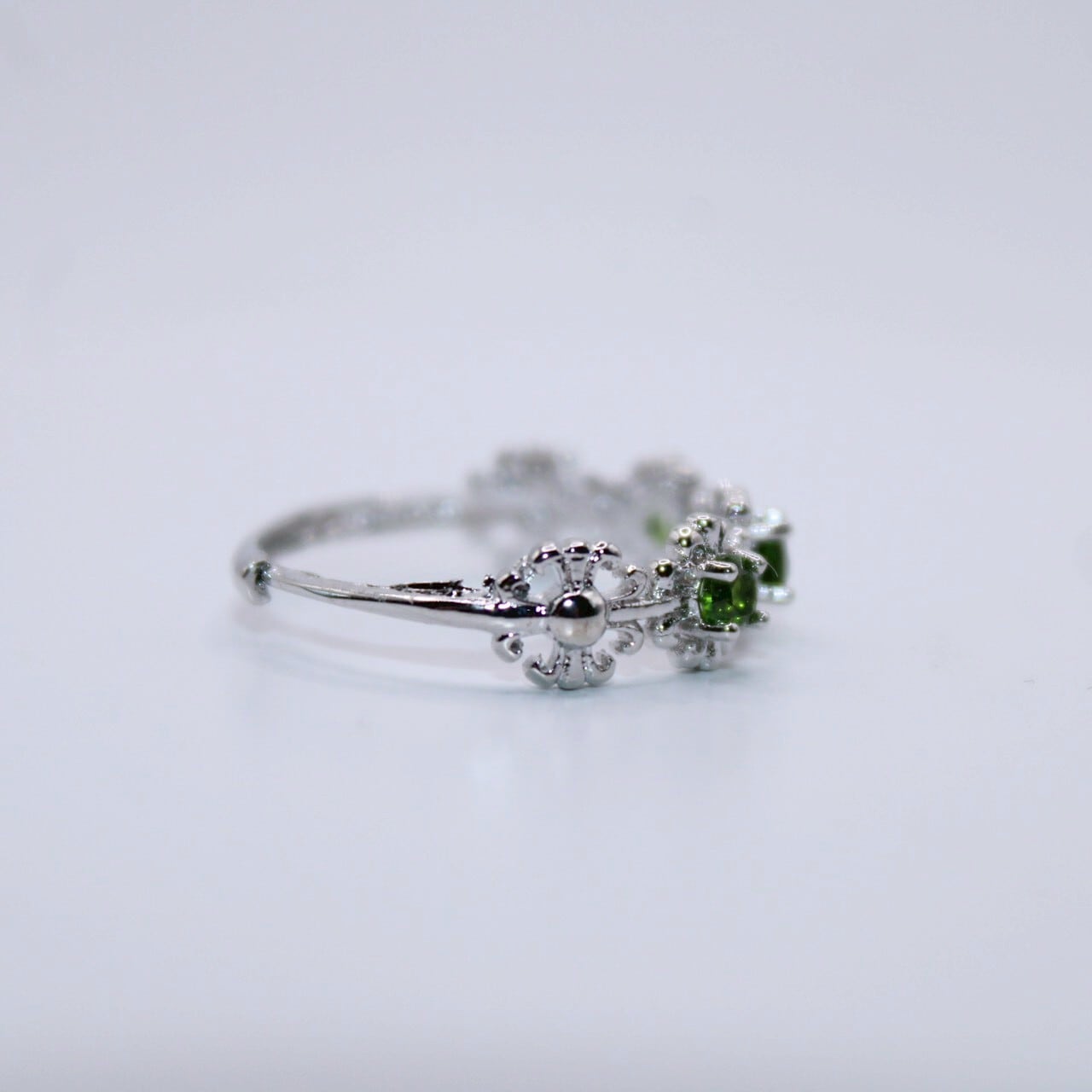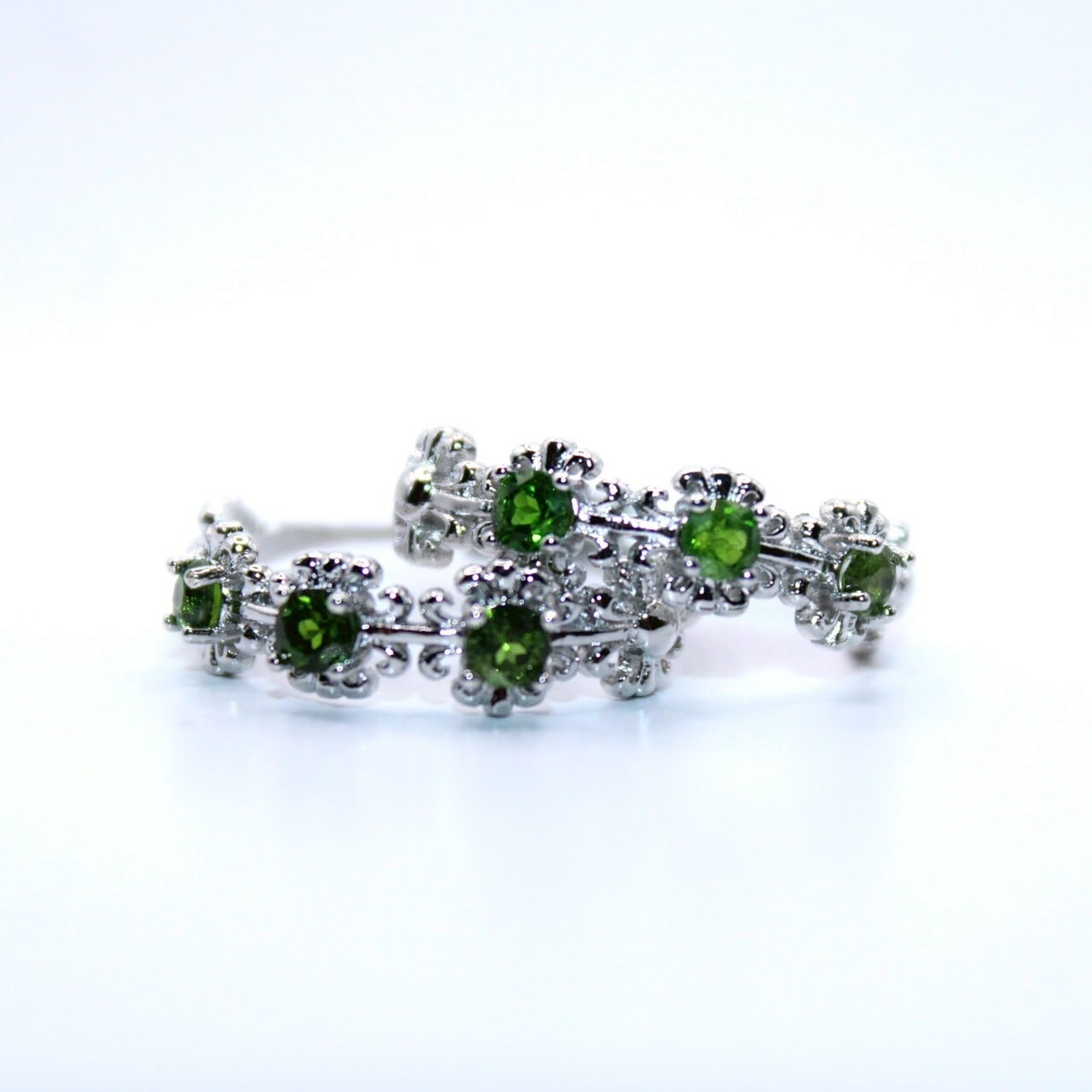 商品コメント: 深いグリーンが美しいダイオプサイトを贅沢に使用したリングが登場!